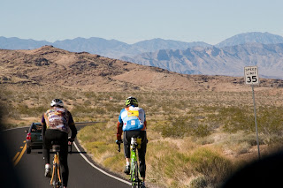 “You just take the next exit to Bunkerville, and it’s all down hill from there,” Alex said as I leaned wearily on my handle bars wondering where the last rest stop was and if the suffering would ever end. I was alone and hadn’t seen the rest of my team for more than an hour since I had pulled away from them as we climbed out of Overton. It’s November 13, 2010, Day One of Bike MS 2010, and I had “only” 12 miles to go before reaching the finish line and completing the first 100 miles of 200 miles in two days. It had been non-stop 20 plus miles per hour headwinds all day, a sharp contrast to my euphoric first experience with Bike MS the previous year.
