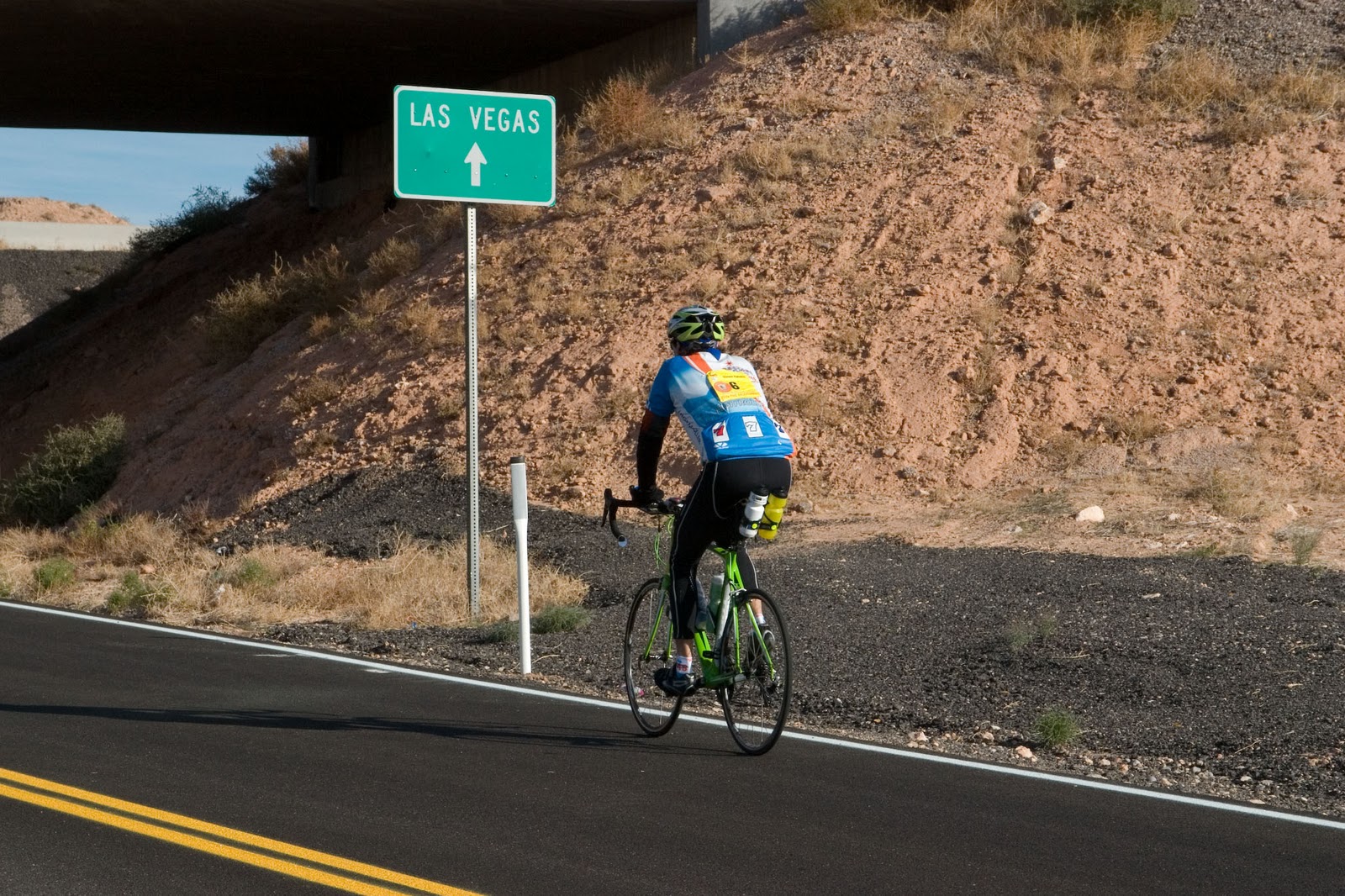 “You just take the next exit to Bunkerville, and it’s all down hill from there,” Alex said as I leaned wearily on my handle bars wondering where the last rest stop was and if the suffering would ever end. I was alone and hadn’t seen the rest of my team for more than an hour since I had pulled away from them as we climbed out of Overton. It’s November 13, 2010, Day One of Bike MS 2010, and I had “only” 12 miles to go before reaching the finish line and completing the first 100 miles of 200 miles in two days. It had been non-stop 20 plus miles per hour headwinds all day, a sharp contrast to my euphoric first experience with Bike MS the previous year.