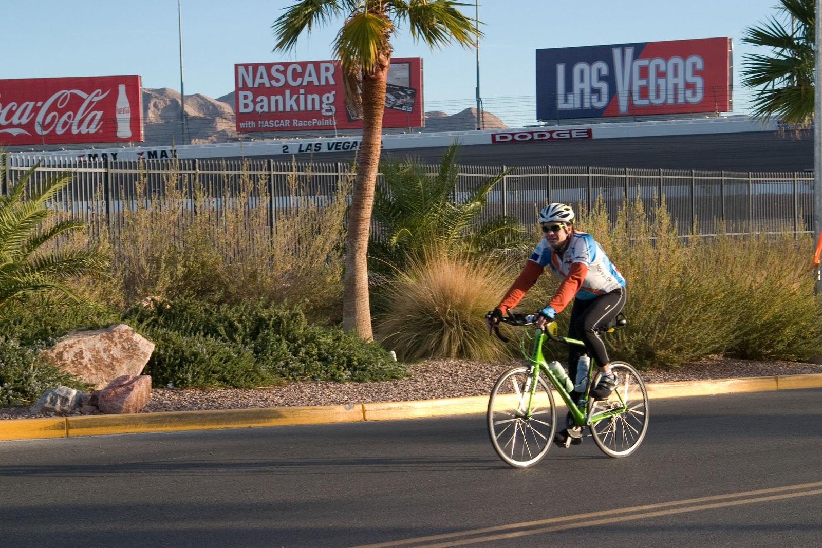 I frequently rode up mountains such as Mt. Potosi and Mt. Charleston, and took on long rides such as doing two loops of the River Mountain Trail at Lake Mead for 70 miles. My first century of 2010 was the Tour de Fire at Lake Mead, which I rode alone. My next century started with a group, but quickly broke up, and I wound up alone doing two loops of Red Rock (very difficult even once) along with one Mt. Potosi climb, up and over and back. After that, I did 108 miles solo out to Pahrump, up north, and almost around to Indian Springs before I couldn’t ride any longer that day. A few weeks later, I went to Arizona and did a charity century ride in Flagstaff. It was hot and very difficult, and I rode much of this alone, too. Between all these rides, I did shorter rides or more difficult mountain climbs, along with specific interval training as well as group rides.